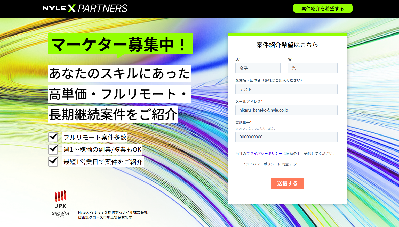 Nyle X Partners(ナイルイクスパートナーズ)は、フリーランス・副業のWebマーケター向けに特化した案件紹介エージェントサービスです