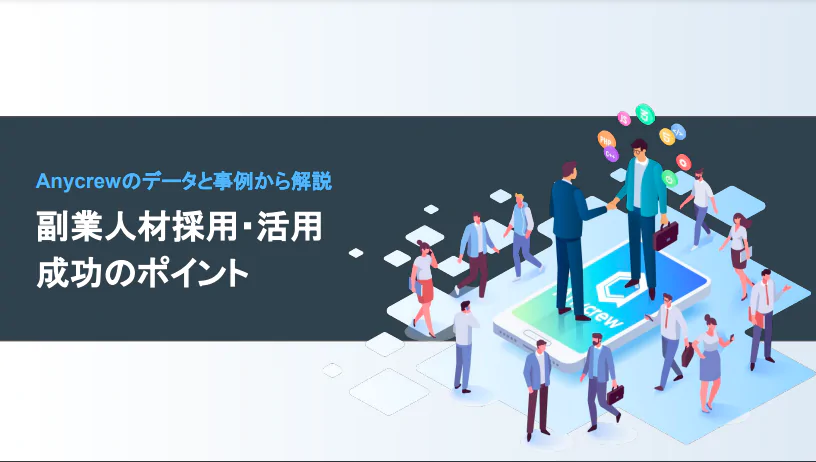 Anycrewは、フリーランス・副業人材マッチングサービスを運営しています。そのAnycrewの利用データや事例を踏まえて「副業人材を活用すべき理由」「副業人材採用のポイント」「副業人材との働き方のポイント・事例」などをまとめた資料を公開しています。